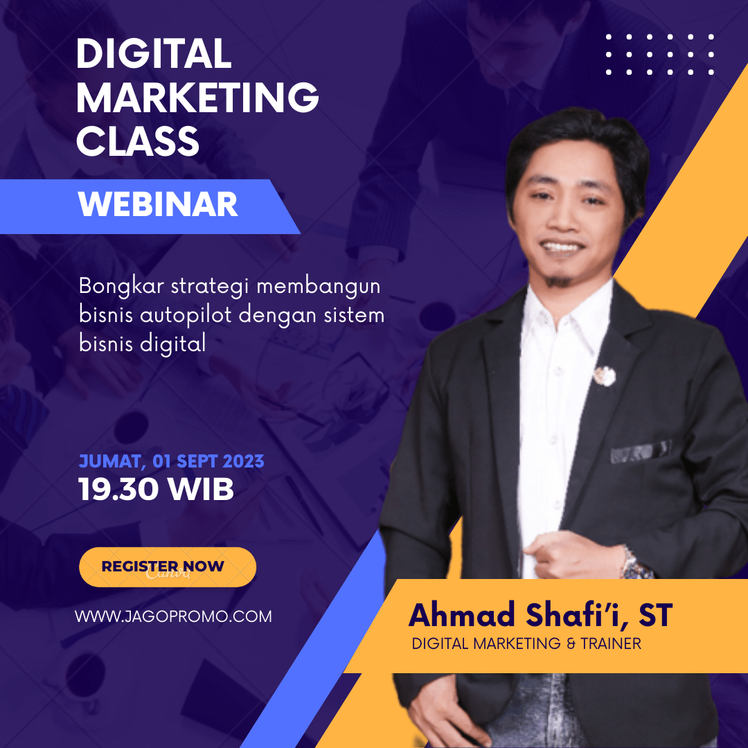 Ikuti Webinar Digital Marketing Class dengan jadwal sebagai berikut : 🗓️ Tanggal : 04 Sep 2023 🕖 Jam: 19.30 WIB 📍 Lokasi: Zoom Meeting